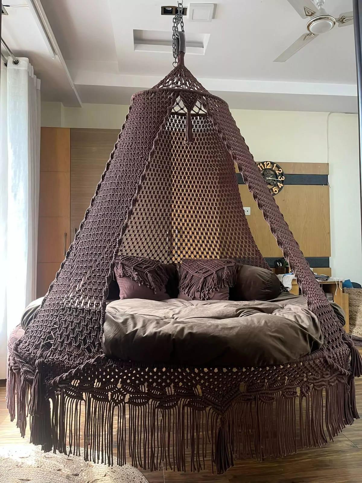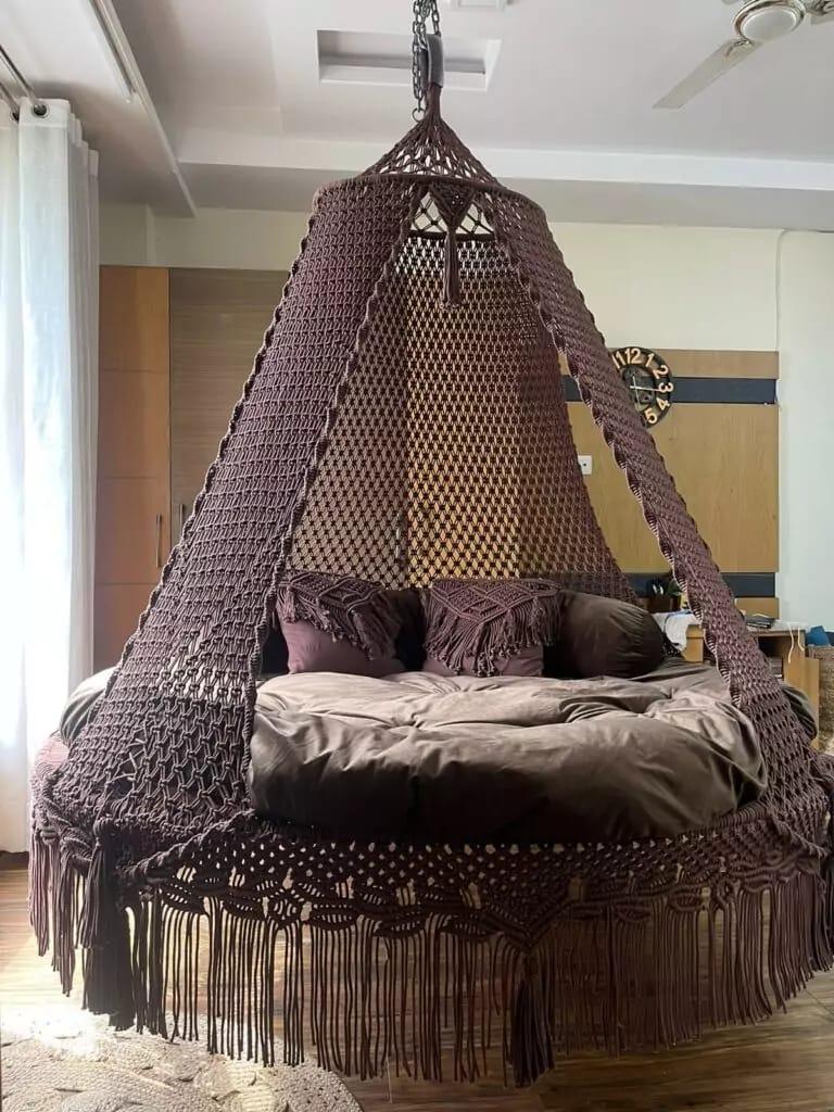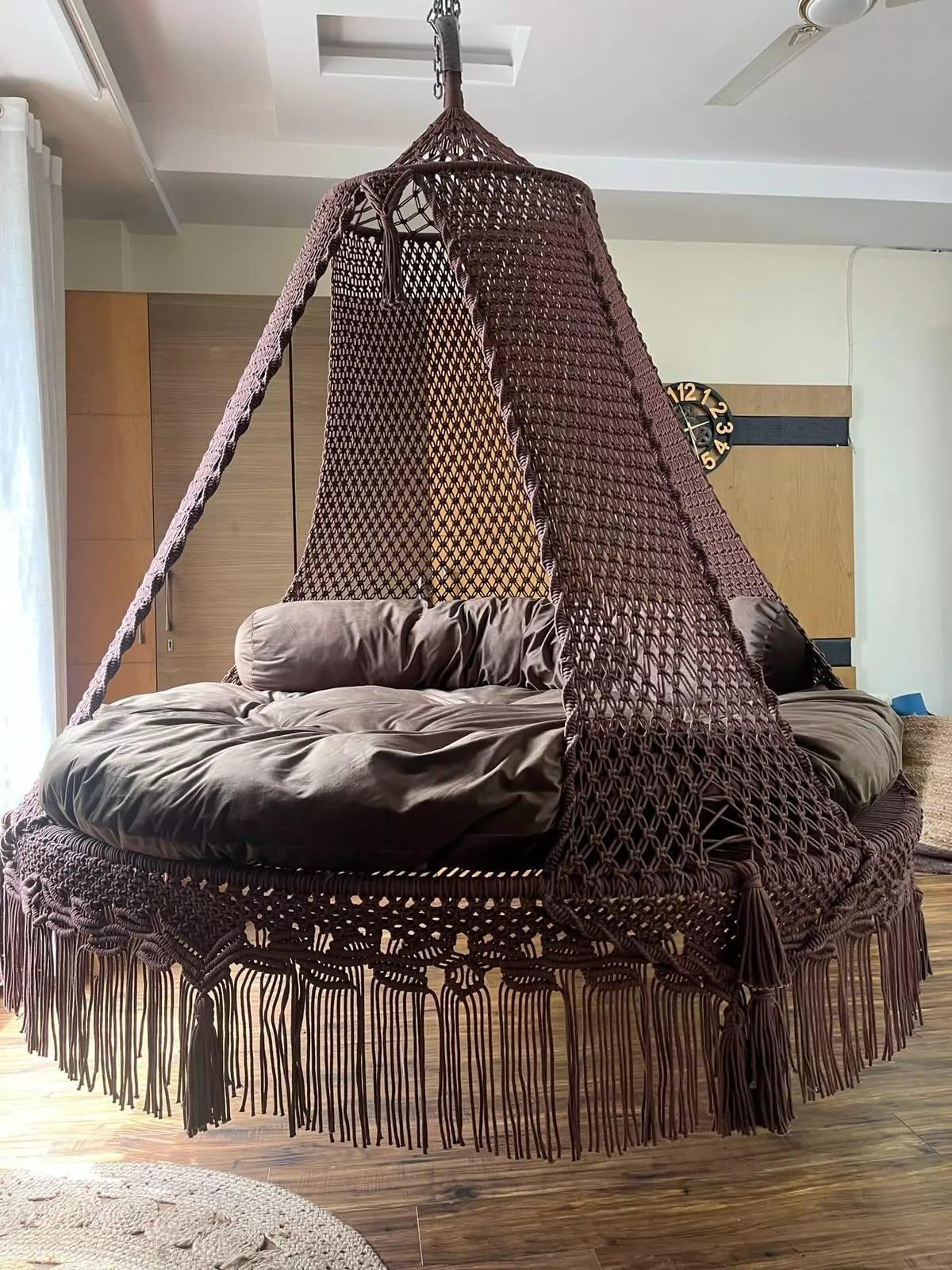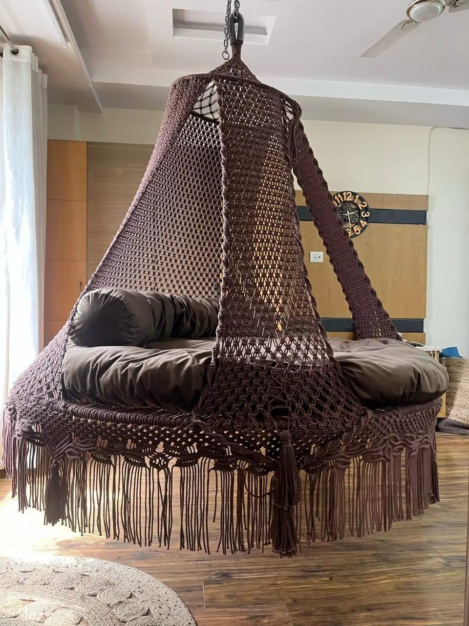 - Brown macrame hanging swing
