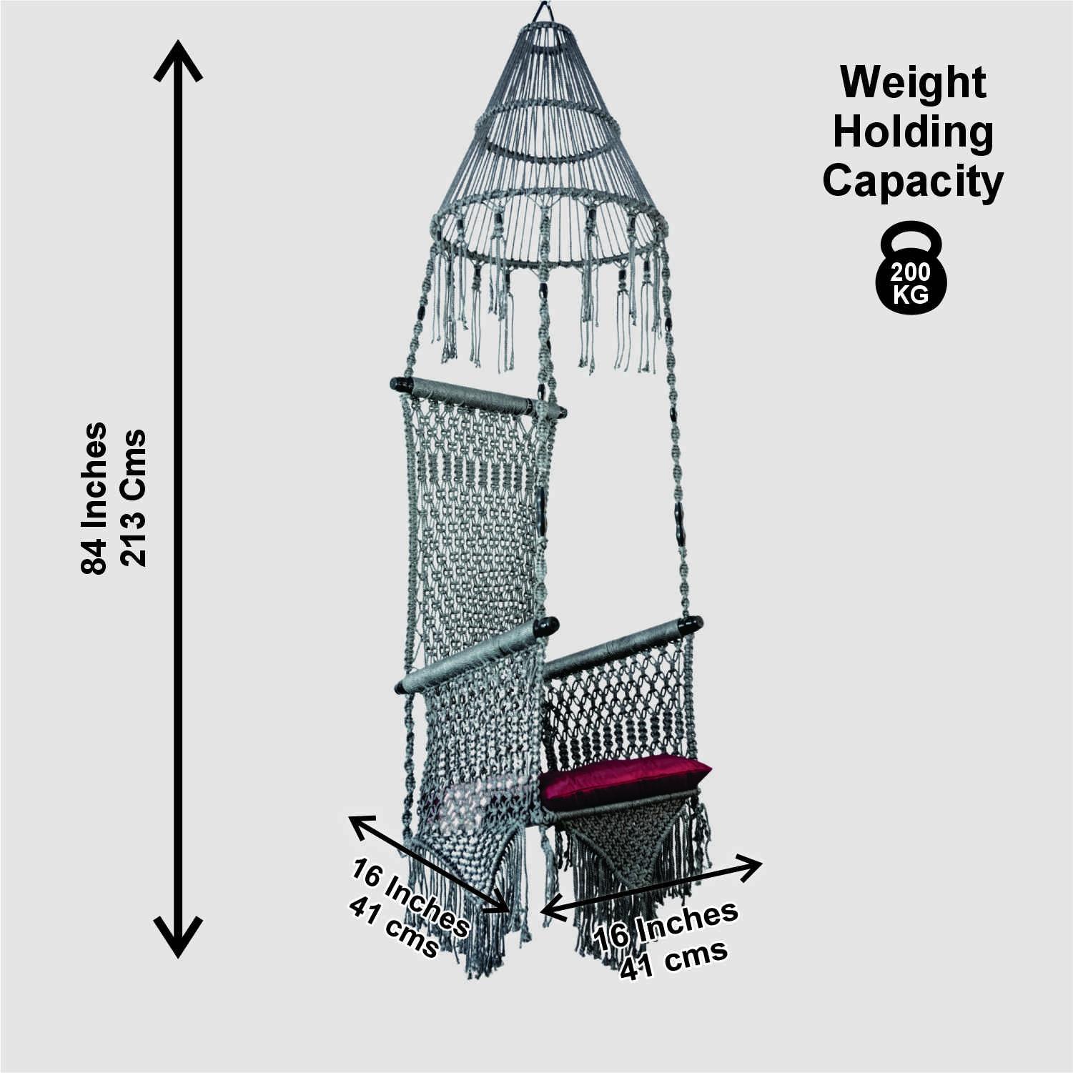 Made with strong cotton ropes and reinforced hanging support, the chair offers excellent balance and stability. The cushioned seat enhances comfort while maintaining a breathable and lightweight structure.