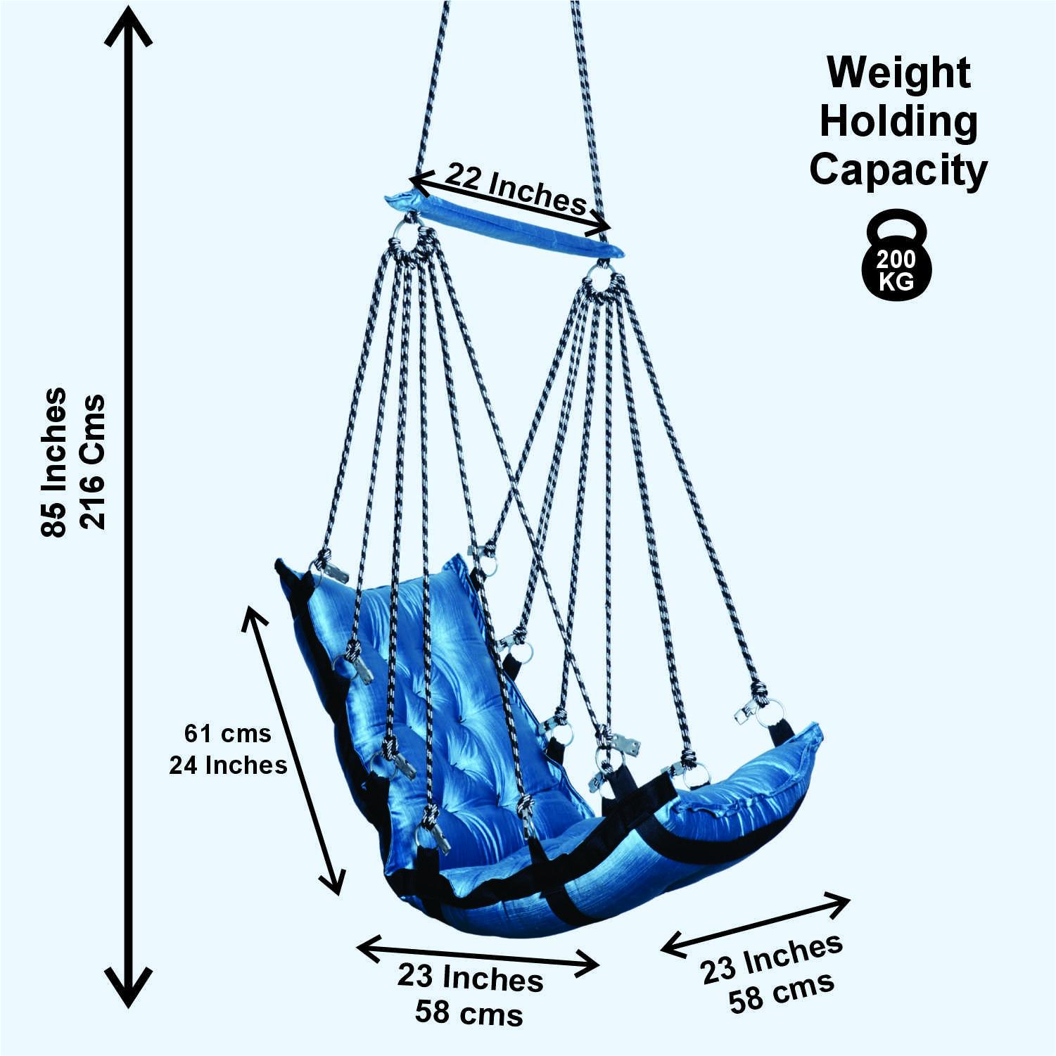 With an impressive 200 KG weight holding capacity, this hanging swing chair is suitable for both adults and children. The elegant blue cushion colour adds a calm, soothing look that complements modern interiors and outdoor spaces beautifully.