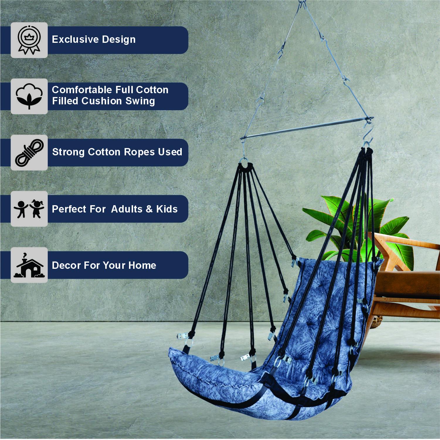 Premium Cotton Rope Hanging Swing Chair Blue Texture Jula with Cushion